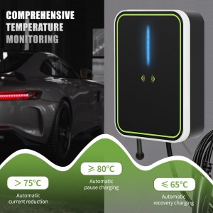 The APP& RFID Function wallbox 16A IEC 61851 380V,casing colours available in black and white, customised casing colours and charging string lengths available for larger orders. Compatible with IEC 61851 , Designed with safety in mind, there are protection mechanisms forover-current,over-voltage andover-temperature problems, with a aggregate of 8 safety measures to cover the device and the auto during charging. The casing is made of ABS PC injection moulding and has a fire standing of UL94V_0. The factors of the main board are handed in well- known manufacturers, with dependable quality. The main control MCU is characterised by low power consumption, high performance and high integration. The operating temperature covers-40 °C-85 °C, which can meet the harsh working terrain.The EV charging string is made of high chastity bobby with excellent electrical conductivity, slow heating of the captain during high current charging and long operating time. The external cover is made of high quality cable, which is resistant to erosion and low temperatures, so that the charging string won’t harden due to low temperatures and help the device from working duly. Easy to install, it’s recommended to use hard wiring for the input power string. The installation height of the charging device is about1.5 M from the ground. a hook is included to store the ev charging string.